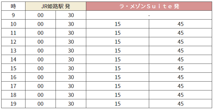 シャトルバス運行時刻表