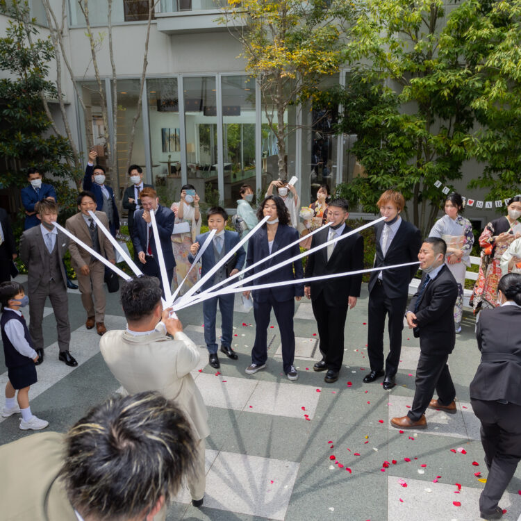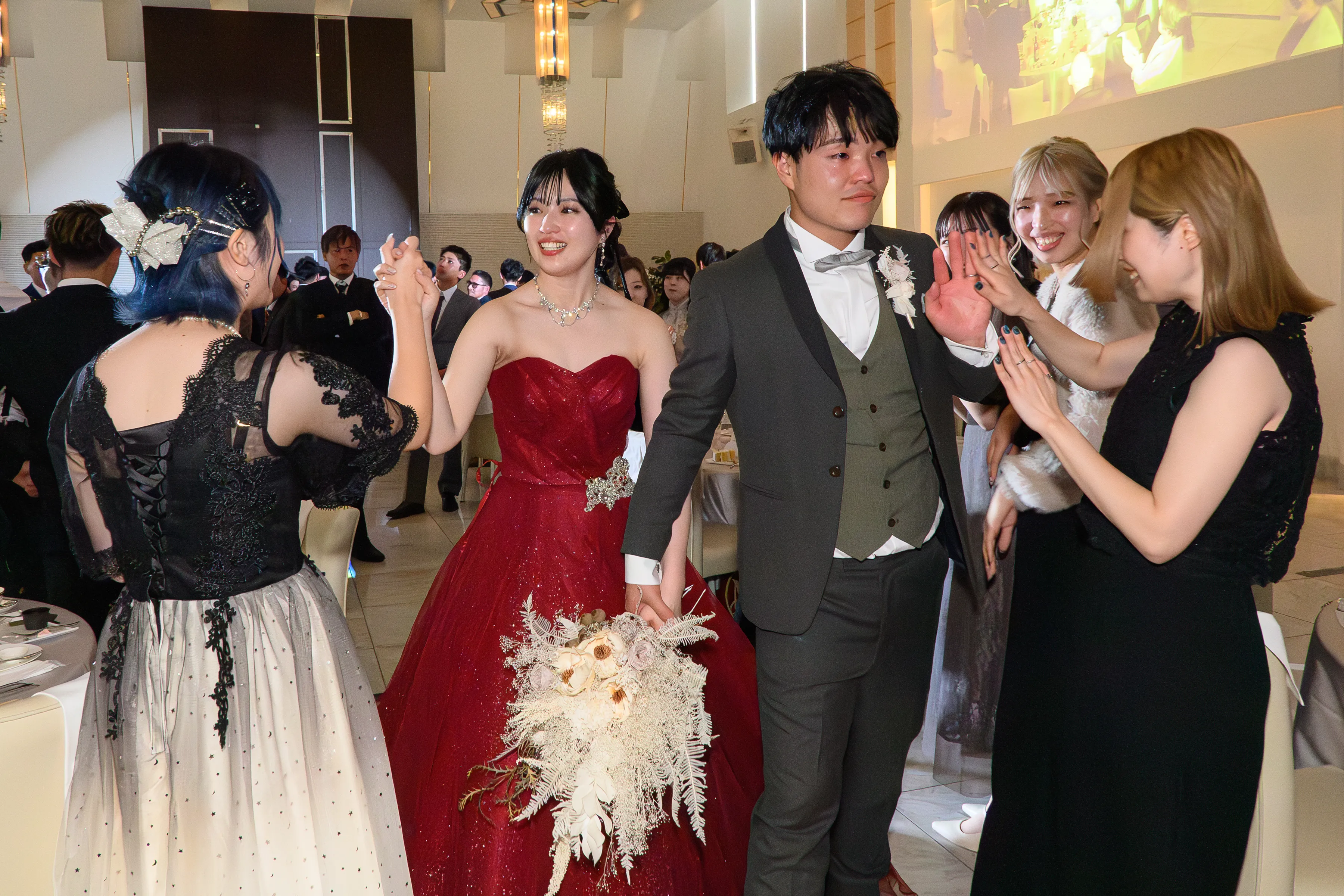 披露宴のおひらきに!ハイタッチ退場