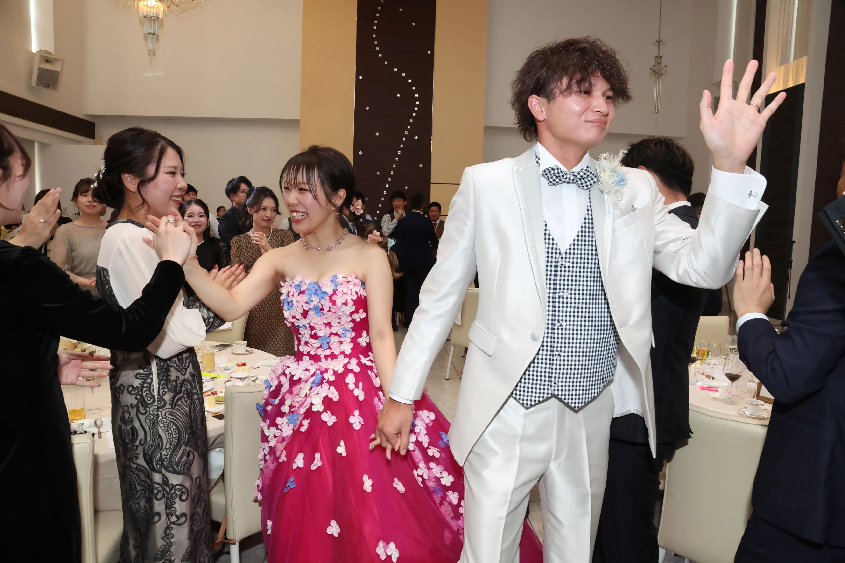 披露宴のおひらきに!ハイタッチ退場